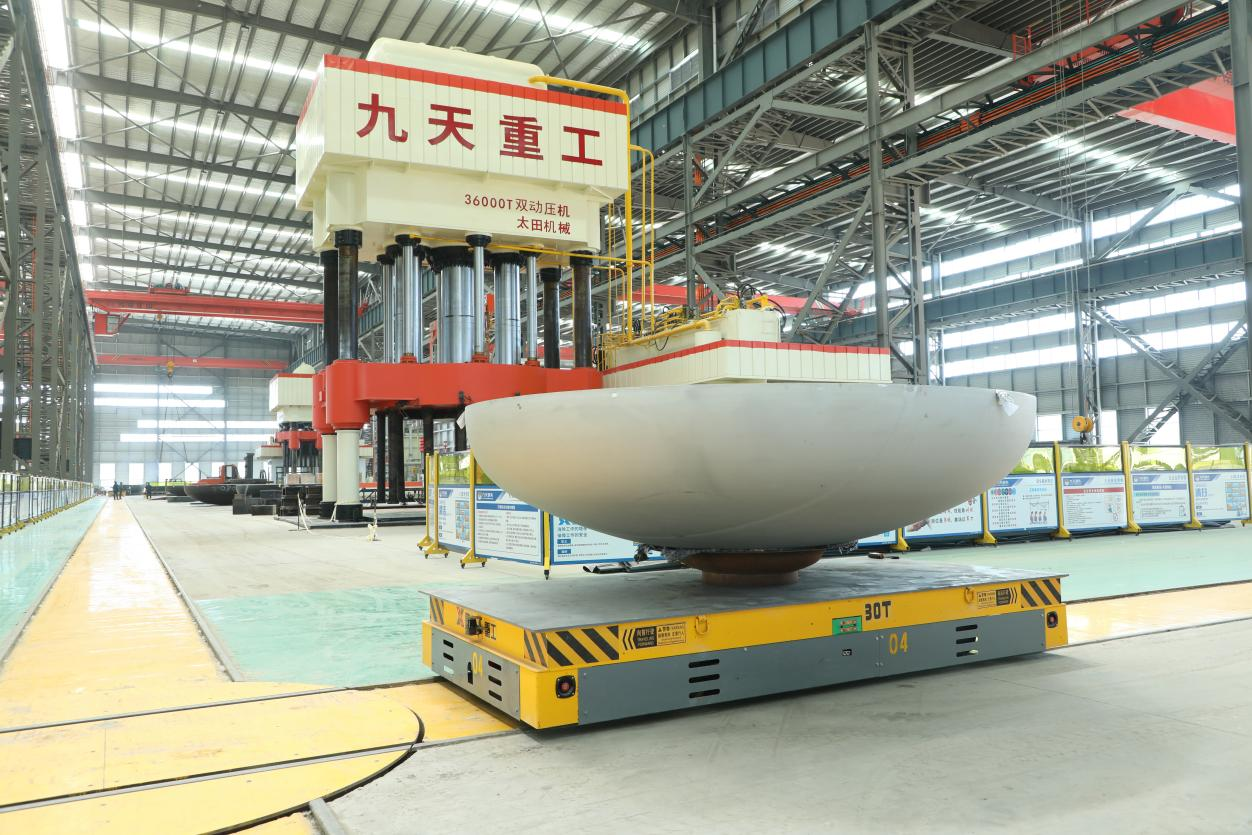 近日,由河南九天封頭有限公司承制的Q345R+30408復(fù)合板球形封頭,在36000噸智能雙動壓機(jī)的精準(zhǔn)操控下實(shí)現(xiàn)整體壓制成型。該封頭單重超20噸、規(guī)格為HHA4500*80mm,不僅刷新了企業(yè)在大型復(fù)合板封頭制造領(lǐng)域的技術(shù)高度,···