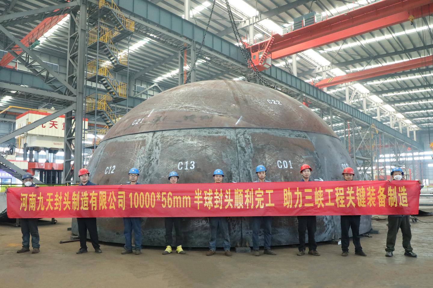 近日,河南九天封頭有限公司成功制作的10000×56mm(直徑10米、厚度56毫米)Q550CFD 材質(zhì)半球封頭順利啟運(yùn)。作為低焊接裂紋敏感性高強(qiáng)鋼,Q550CFD屈服強(qiáng)度≥550MPa、抗拉強(qiáng)度≥690MPa,能適配高壓工況,該部件將用于···